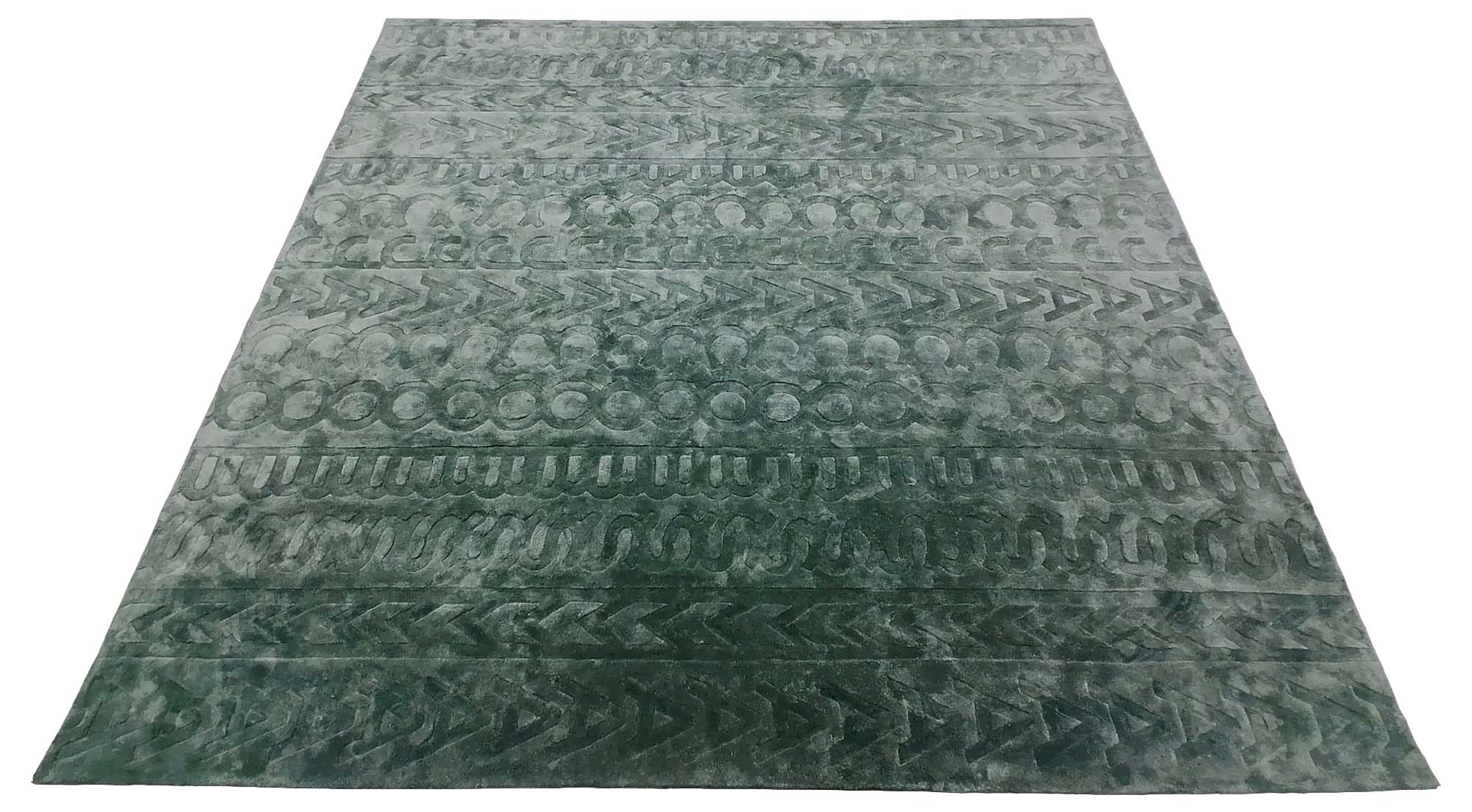 The brief required the rug to have a subtle shimmer and prominently feature the Marc Jacobs logo. To achieve this, we selected a hand-tufted Art Silk quality, using 15mm high pile for the logo lettering and 10mm low pile for the background. The letters were then expertly hand-carved to create a striking, elevated effect.