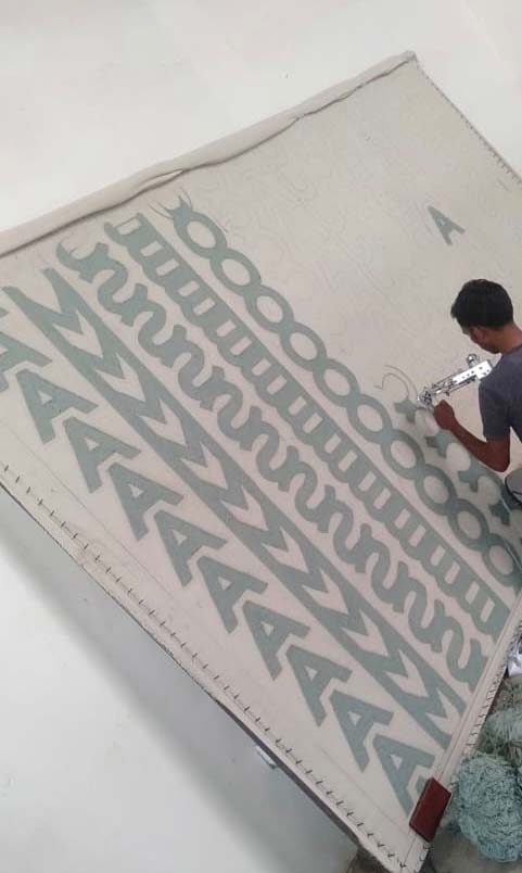 Upon completion, final images were shared, and the rug was professionally packed and shipped to the USA. The client was delighted with the final result, and the rug received excellent feedback for its impact and quality at the installation.