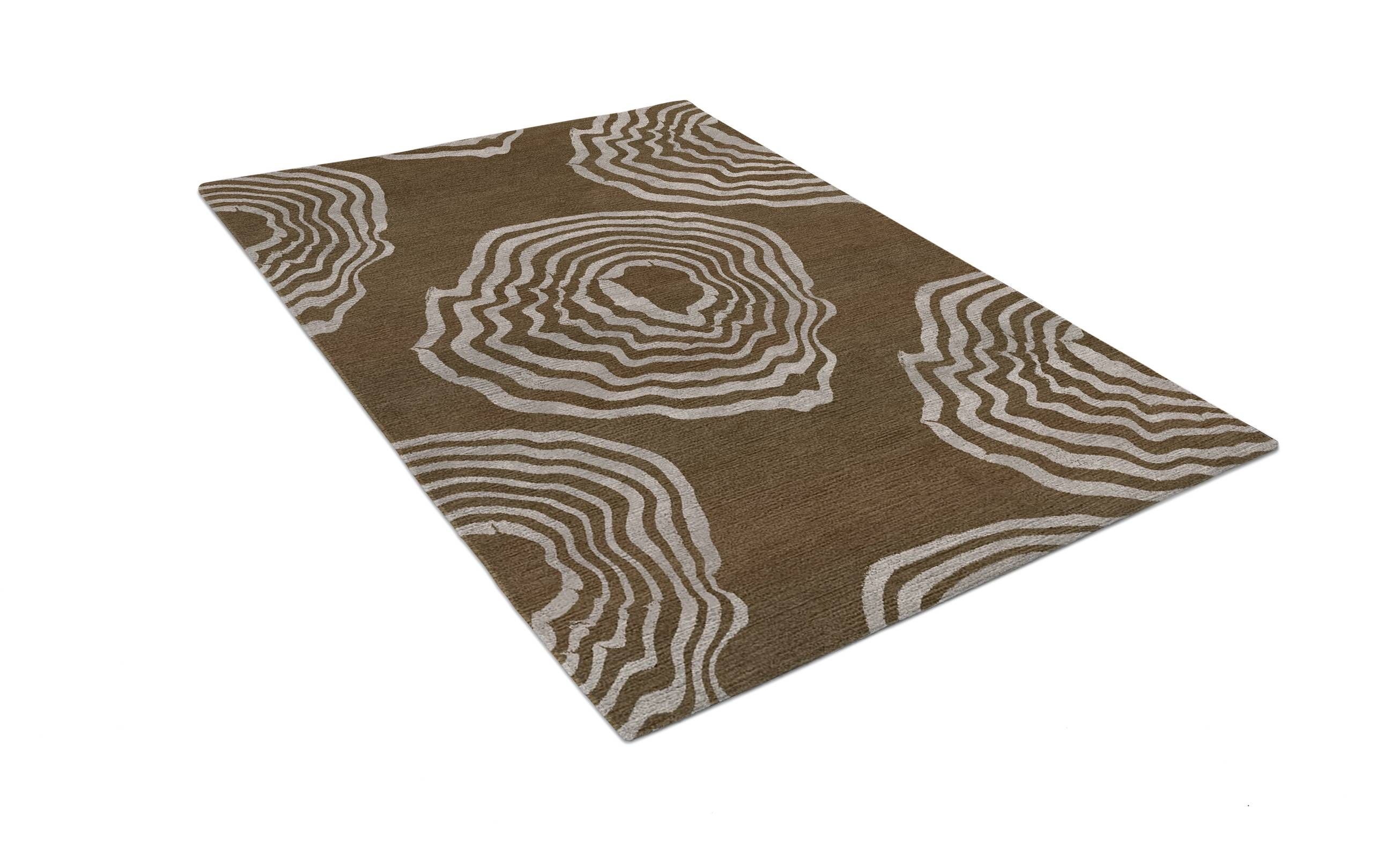 Custom made hand knotted New Zealand wool and art silk design available in a choice of four colours and five sizes. Option shown is 274cm x 183cm (9' x 6')