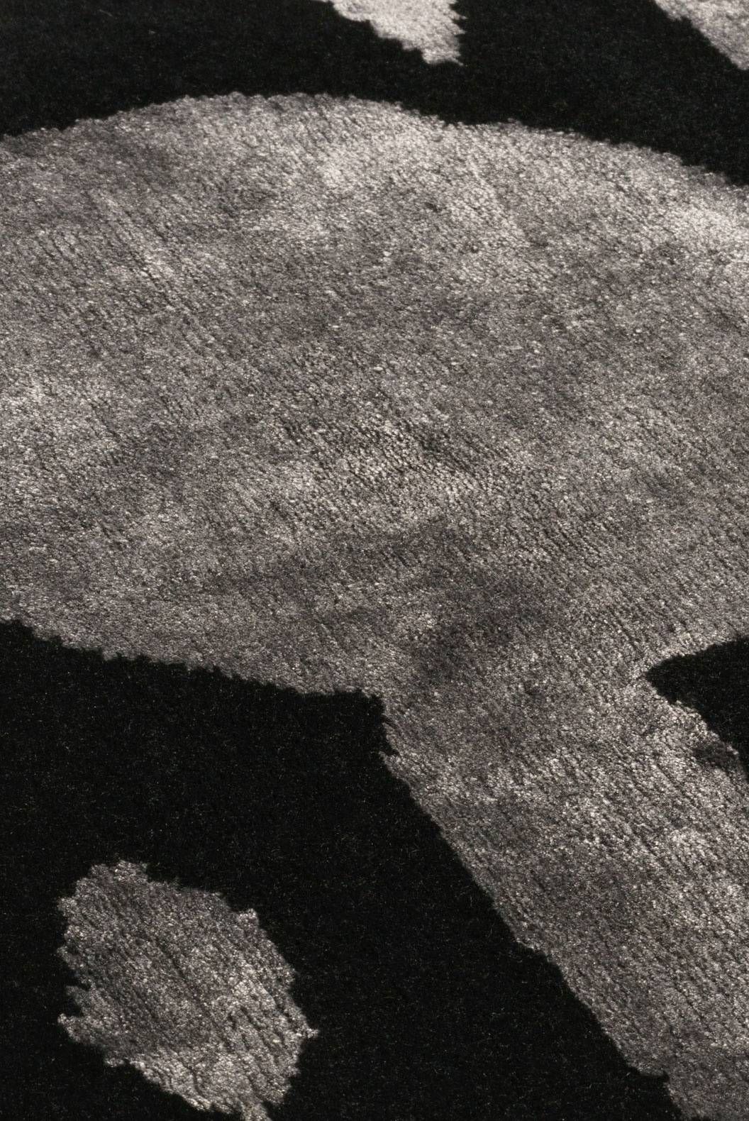 Custom made hand knotted New Zealand wool and art silk design available in a choice of four colours and five sizes. Option shown is 274cm x 183cm (9' x 6')