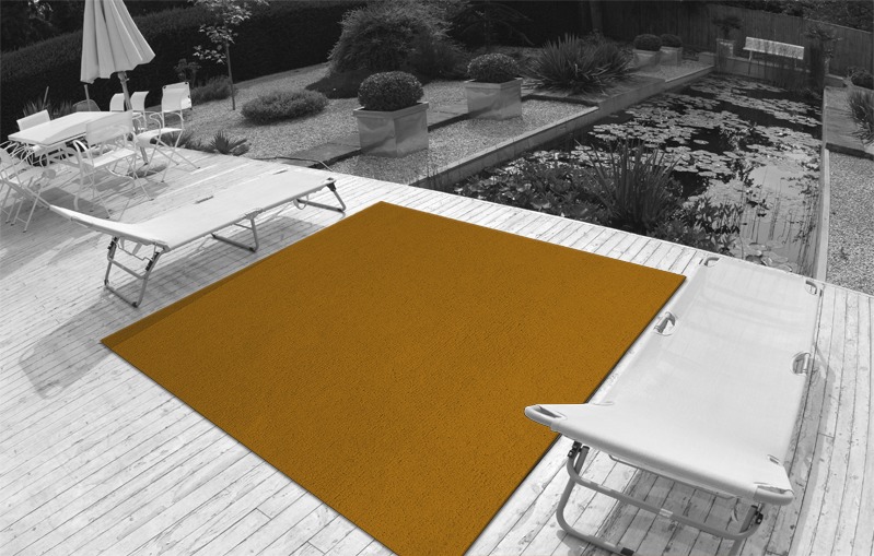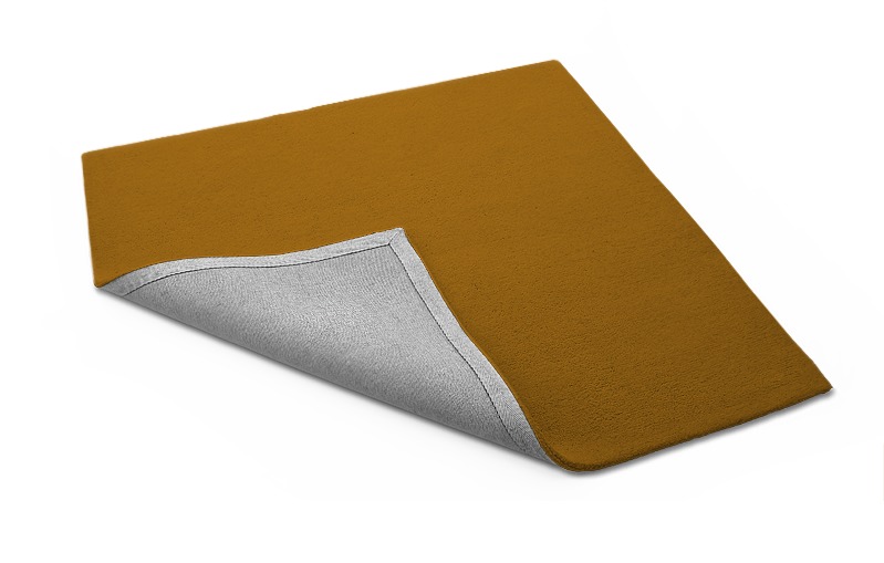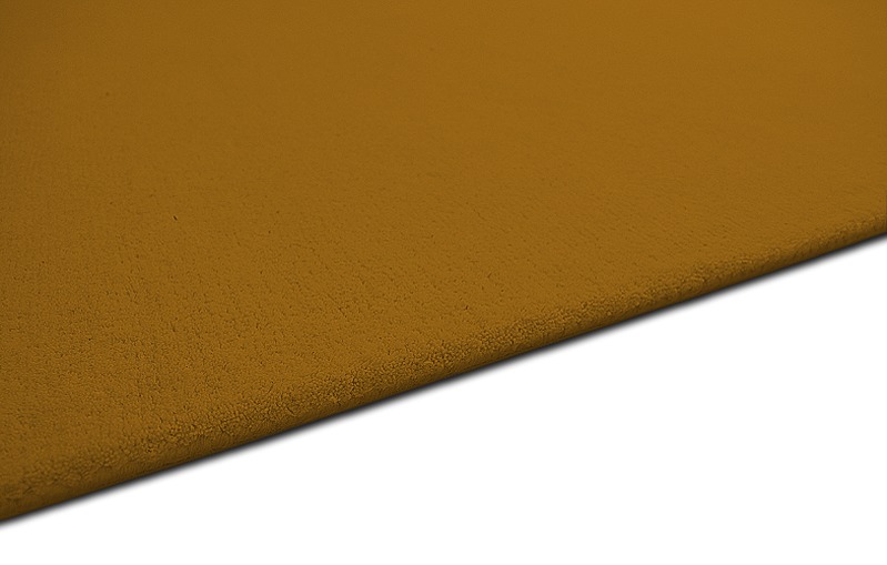 This hand-tufted pure wool plain rug in burnt maize yellow is hand made to measure by rug couture.